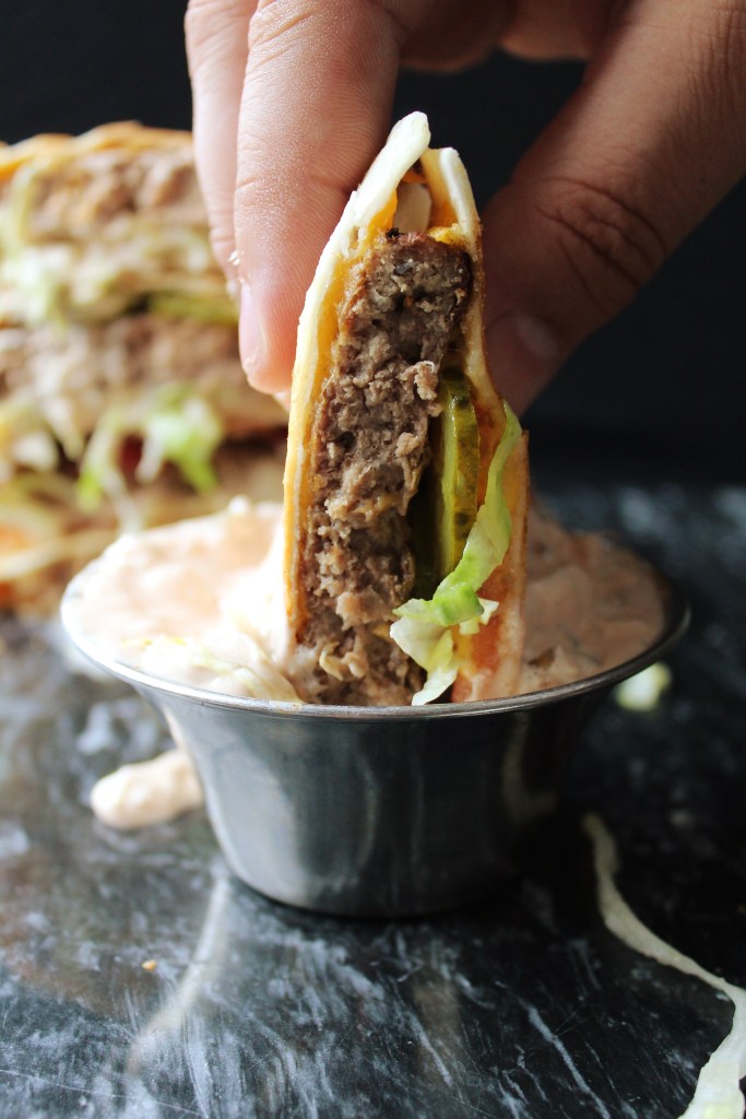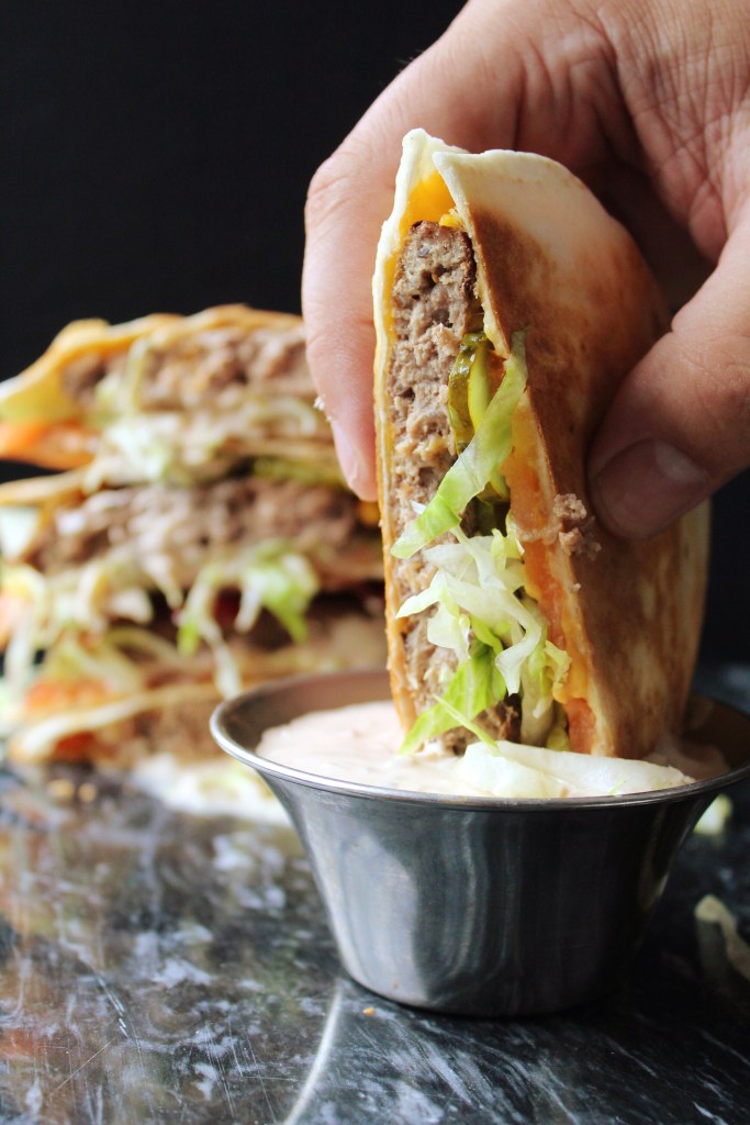 WELCOME !!!! I am so excited that you are here!!!! & what better way to start this new chapter off than with a new tasty recipe?! I give to you, the *cheeseburger quesadilla* But not just any cheeseburger quesadilla, and no not the one you may be familiar with from Applebee’s – which is one of my favs – but a Big Mac Quesadilla Burger. Yep, you heard me.