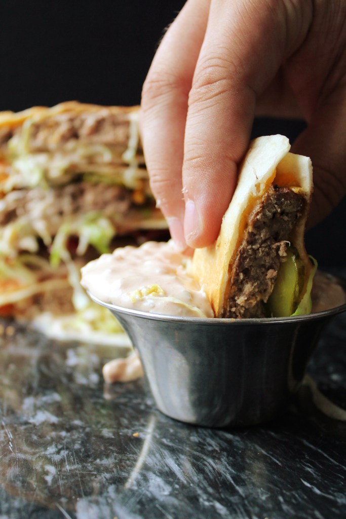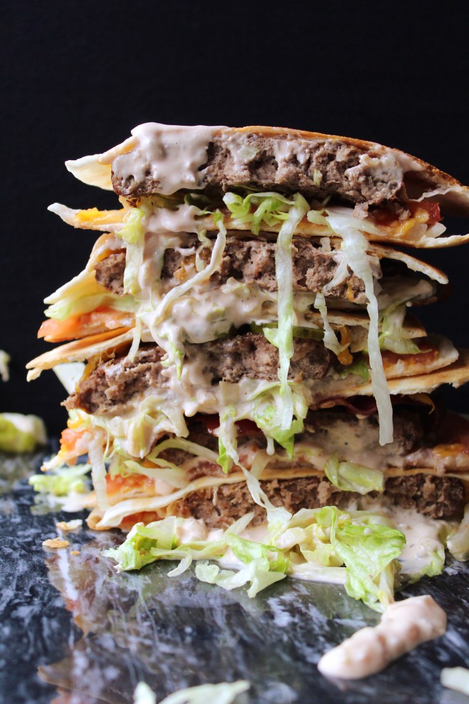 I’ve had a sudden obsession with big mac sauce lately, I guess I am just going through a sauced up phase. I eat it on just about everything. I was also regularly making my own big mac’s at home until it hit me, DO A QUESADILLA BURGER.