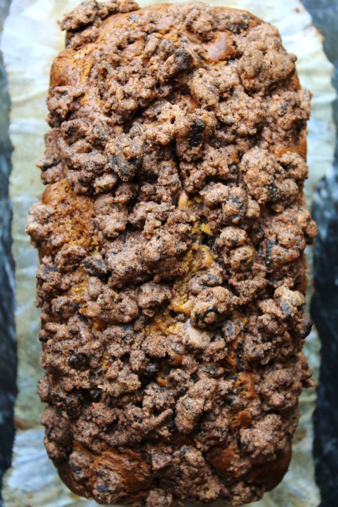 I’m a huge fan of swirled things. If it’s cinnamon rolls or breads, brownies or like, everything. Swirled just tastes better. But with a streusel? And not just any streusel, but Oreo streusel? am I dreaming? The Oreo’s really took this pumpkin bread to a whole different world. They add just enough sweetness without being overpowering, adding a good crumb texture and of course that touch of chocolate we all love. Not to mention, the chocolate crumble next to the orange pumpkin bread, it screams Halloween.