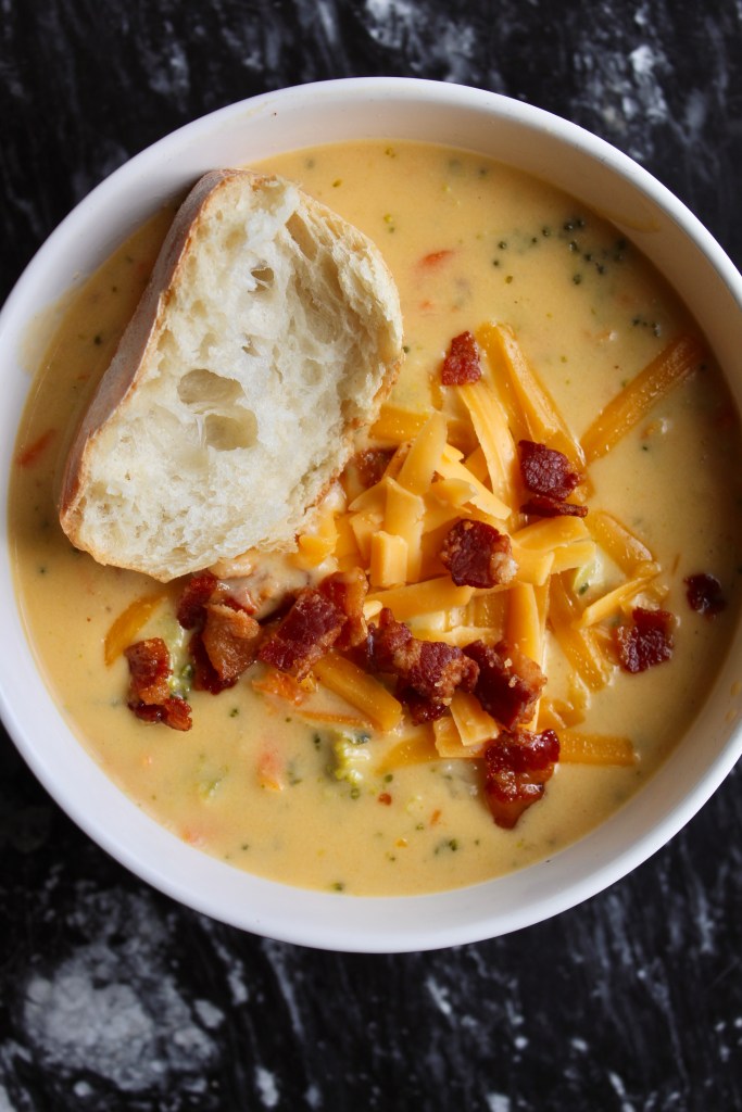 - Now ready to serve. Ladle your soup into bowls, garnish with your reserved bacon, and cheese. Serve with some crusty bread and ENJOY!!!!